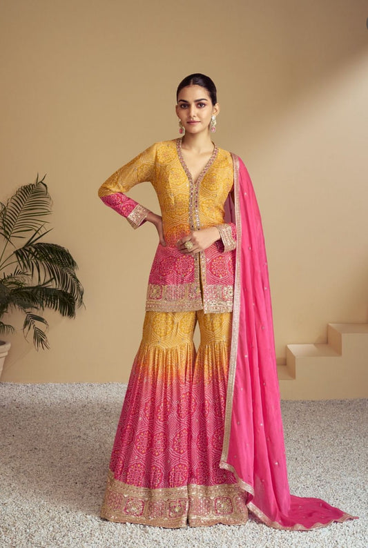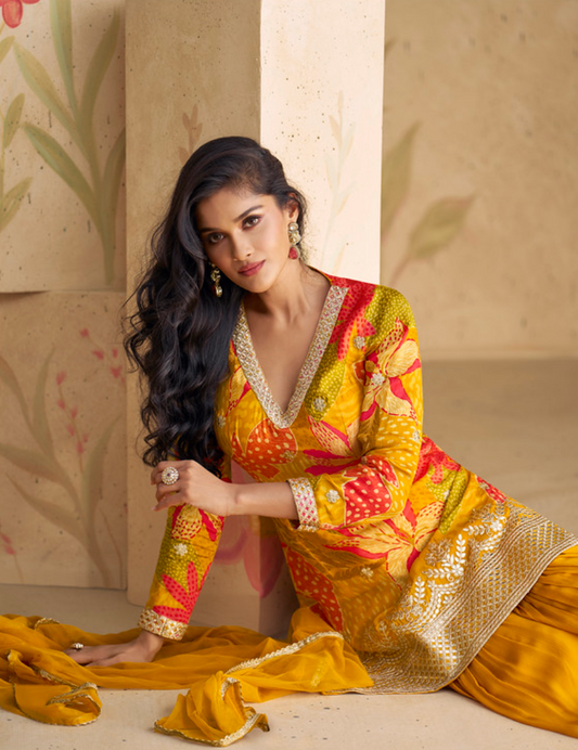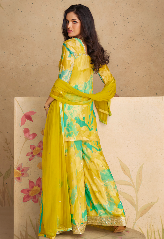 Premium Yellow Chinon Silk Salwar Suit (3- Piece)