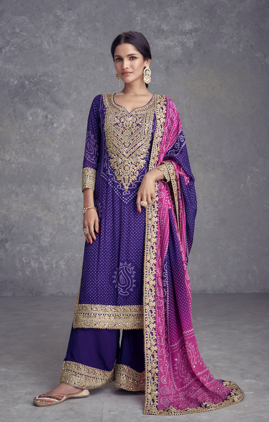 Purple Chinon Salwar Suit (3-Piece)